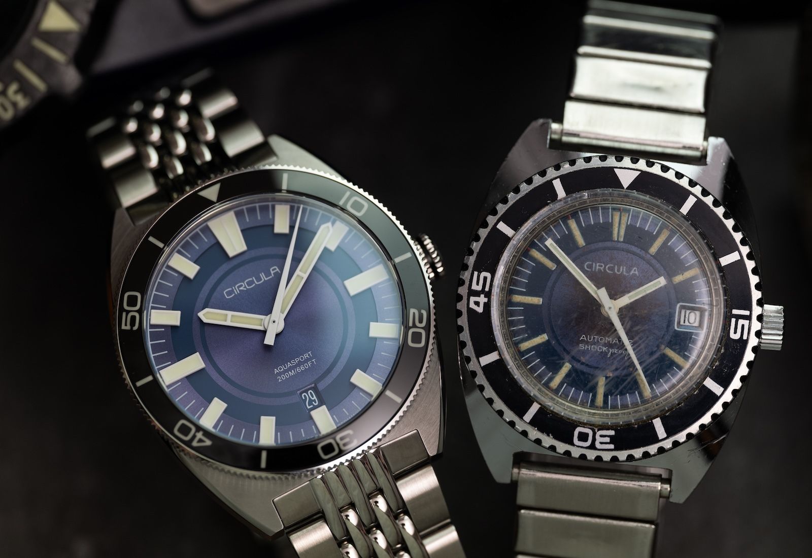 You might not know this, but the family-owned German Circula brand has been around for 70 years, which is an incredible anniversary to celebrate. And they’re doing it in style. It all started last month with a very nice mother of pearl version of their vintage-inspired diver, the AquaSport II. Now, we’re getting a different take on the AquaSport II, one that is even more vintage inspired. I’m not kidding. The photo you see above is of the new AquaSport II 70th Anniversary Original LE on the left and the original Circula that inspired the design.