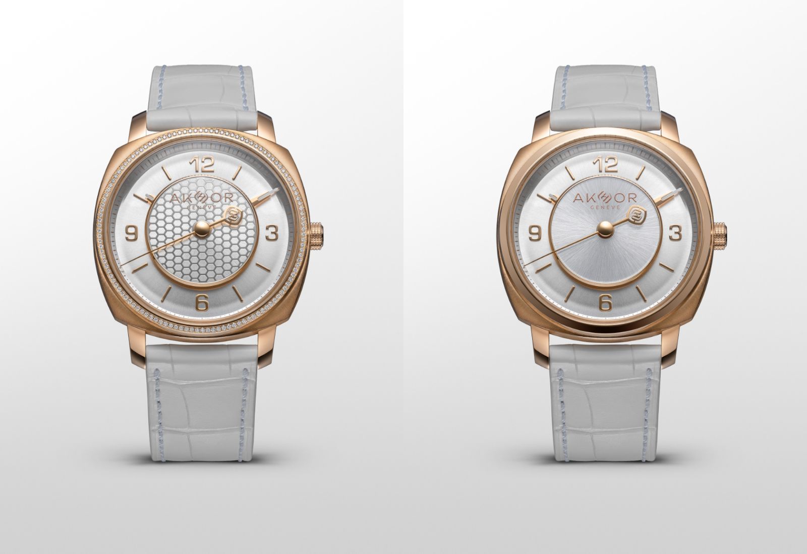 The Akhor Lumière Blanche editions are available now, priced at CHF 57,800 for the sunburst version and CHF 67,800 for the diamond-set honeycomb. See more on the Akhor website.