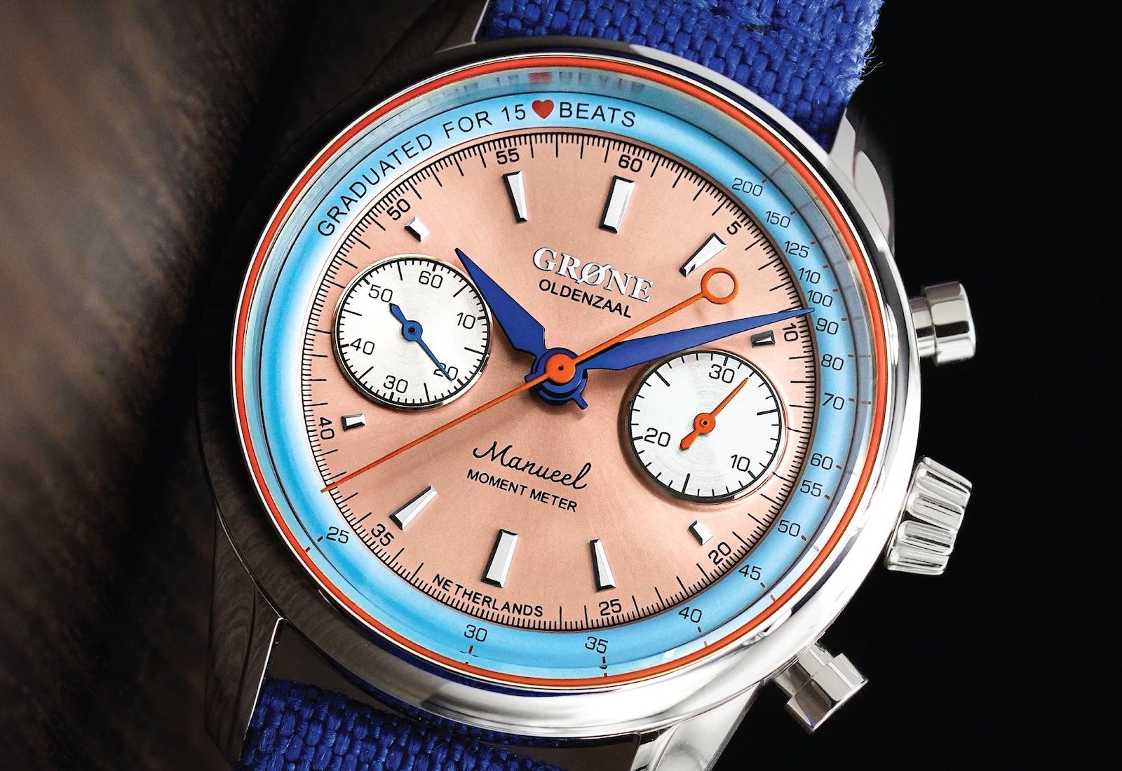 The Dutch watch scene, while loved in some circles, doesn’t seem to get the respect it so much deserves. Which is really weird, when you consider how impactful it is. Fratello and Monochrome, two of the top five online watch publications are based in the Netherlands. ACE Jewelers from Amsterdam is one of the most prolific drivers of watch collaborations in the market. And then there’s the brands and watchmakers, ranging from affordable but fantastically designed Batavi, through De Rijke, all the way up to Holthinrichs, the incredible Christian van der Klaauw and Grönefeld. They really do have it all. And another band joined the fray last year — Grøne Oldenzaal — a brand that’s not brand new, but rather started by the Grönefeld brothers as an accessible alternative to their higher end creations. It marries their style and attention to detail with off-the-shelf movements for a lower price tag. Previously they released the Manueel One, their three-hander. Now, we’re getting the Grøne Oldenzaal Moment Meter, their take on the chronograph with some great colors.
